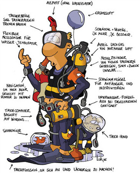 Komplettset beinhaltet: Atemregler / Jacket / Flasche / Blei / Anzug / ABC / Handschuhe / Haube | 28,- € |